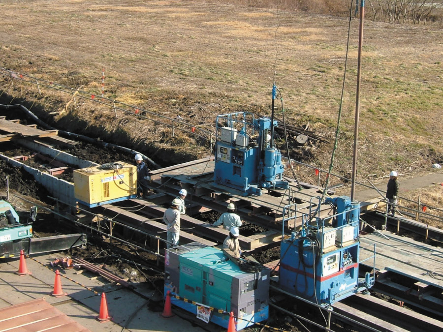 - ■ 専用の管理装置を使用することにより、施工1本毎に深度・流量・圧力・ロッド回転数を記録管理できる優れた施工管理方式を採用しています。