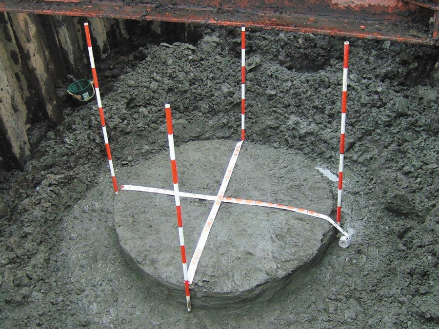 - ■ 改良体の外周部は高圧噴射攪拌による造成のため、改良体のオーバーラップ施工が容易で、改良体相互、あるいは土留壁と改良体との密着施工が可能であり、高い止水性と荷重の伝達が期待できます。