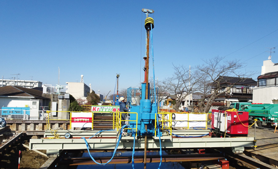 狭所、空頭制限、硬質地盤に対応した地盤改良工法。