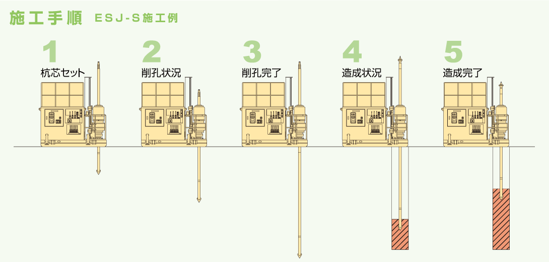 - ■ 他の高圧噴射工法に比べて造成速度が速く経済的な工法です。